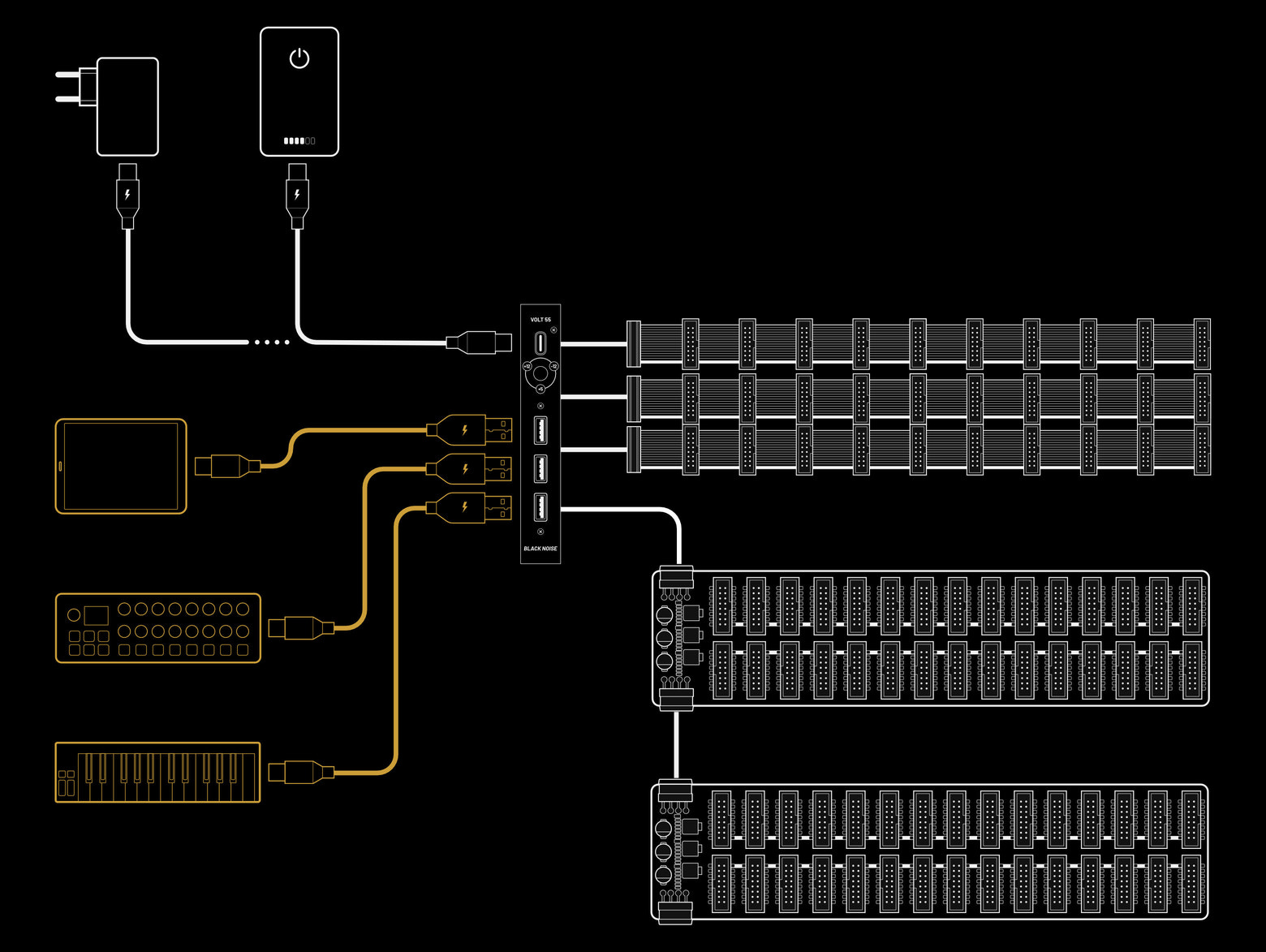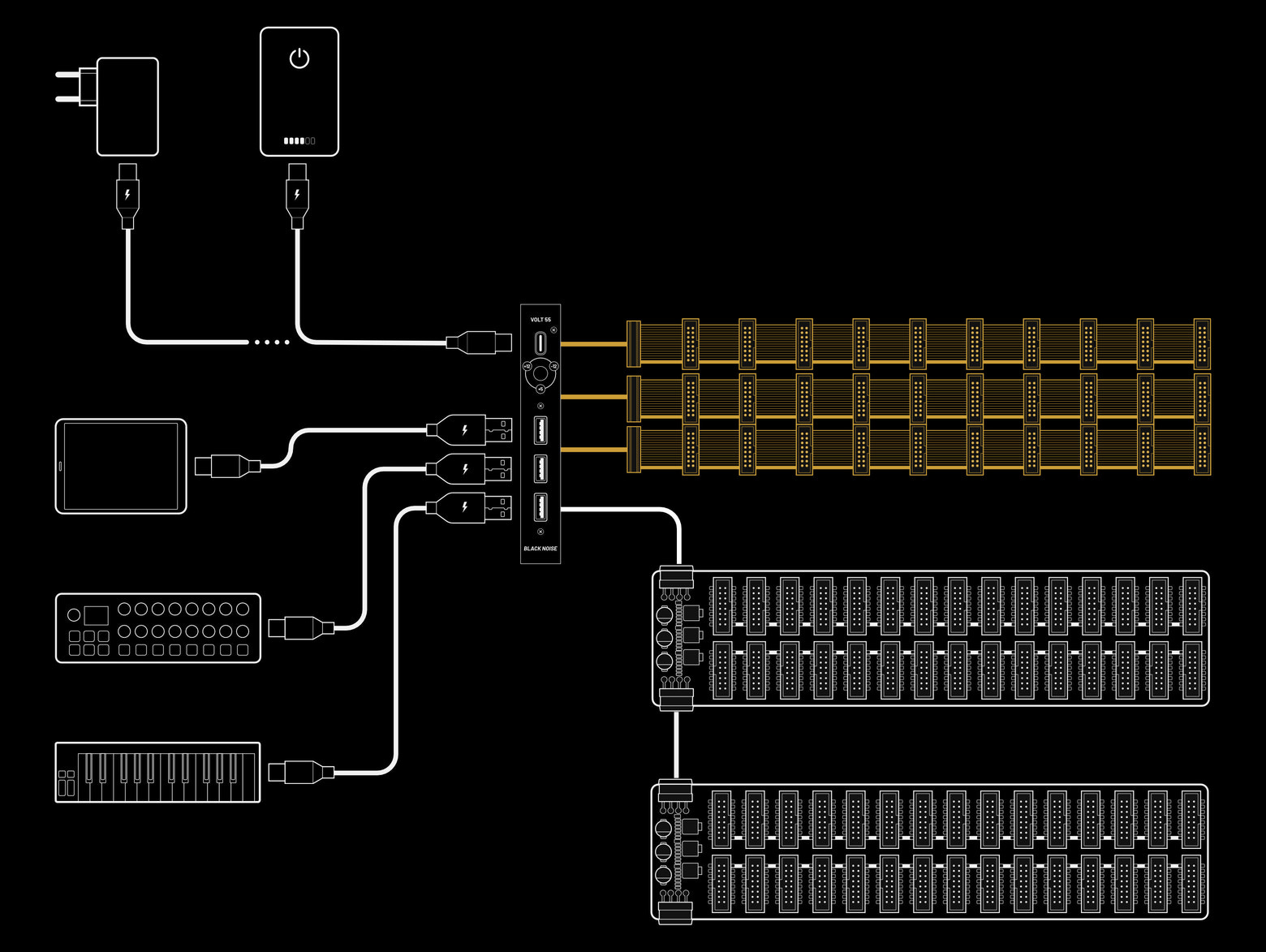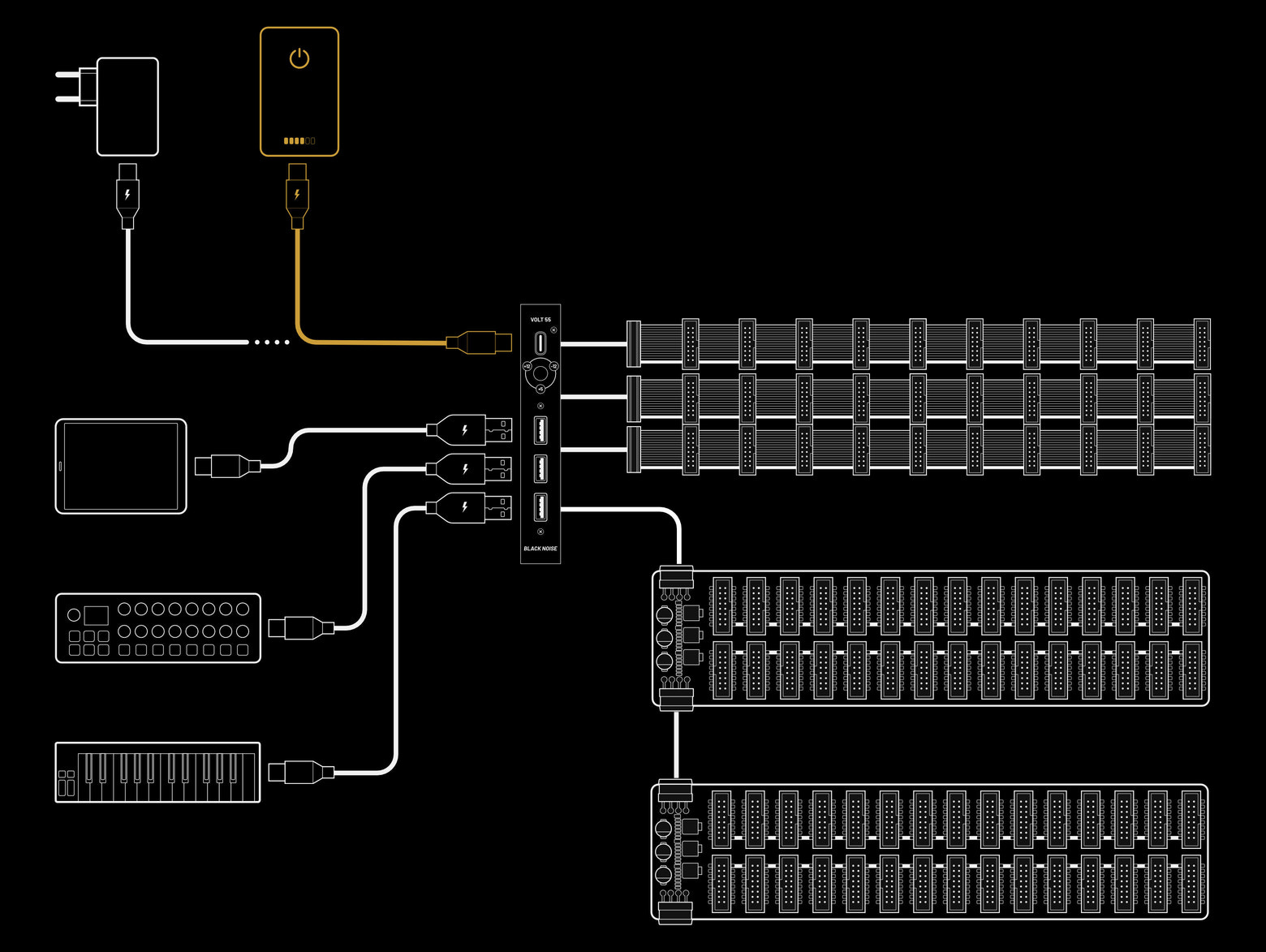 Modular on stage can be challenging, no time to set up or warm up your system, dealing with unstable power, noise or ground loop. The VOLT ecosystem is designed to solve all these issues. Simply connect your VOLT to a powerbank to pre-warm keep clean, isolated power for hours even on large systems.